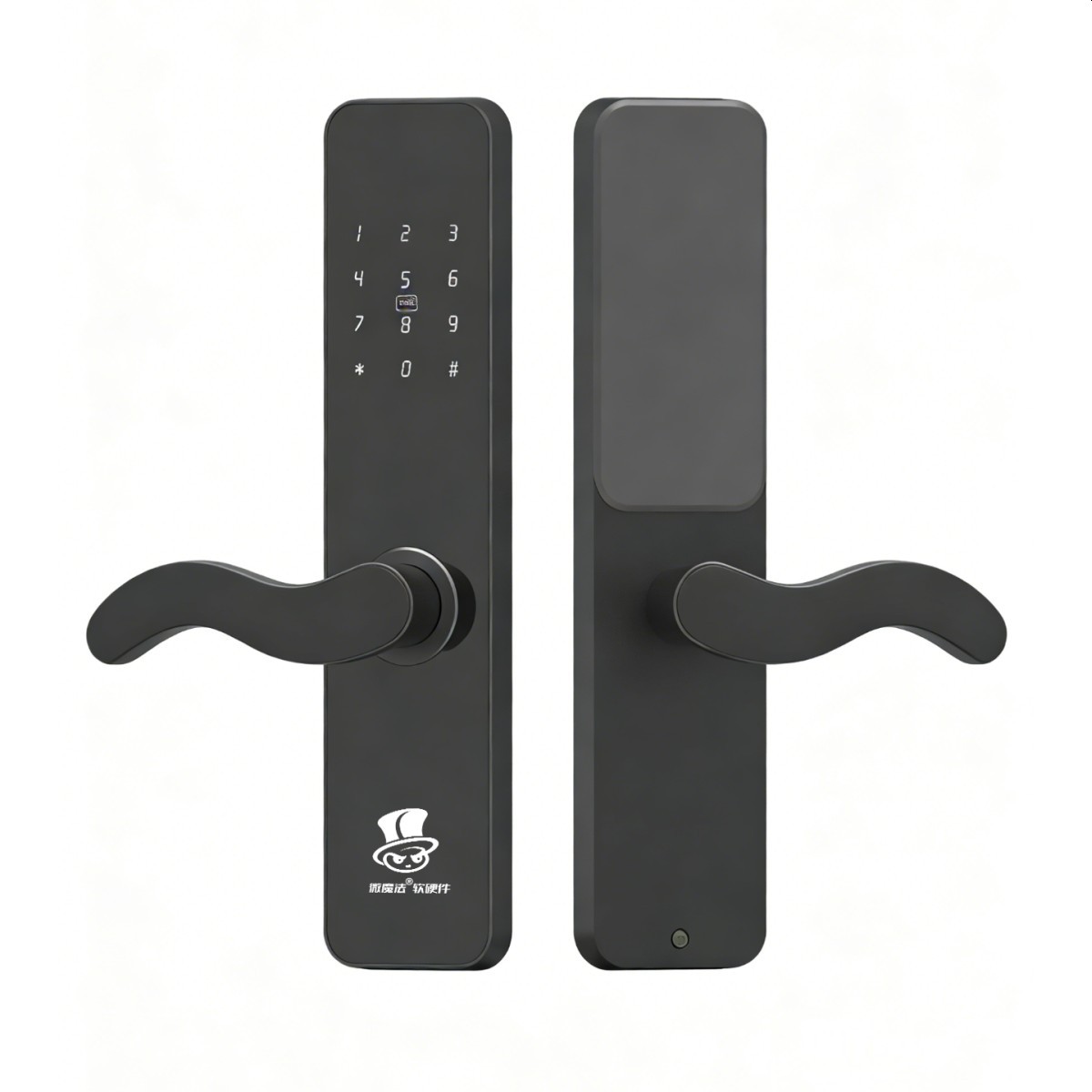 阿勒泰这款智能门锁提供室内门锁和防盗门锁两种选择,其中室内门锁尺寸为 2806521mm,适配 5050 锁体;防盗门锁尺寸为 3657021mm,适配 6068 锁体,可满足不同场景的安装需求。它采用铝合金一体成型搭配钢化玻璃面板打造,兼具坚固耐用的品质与简洁美观的视觉效果。门锁支持蓝牙无线通讯,解锁方式丰富多样,密码、卡片、蓝牙、钥匙四种方式随心选择,满足不同使用习惯与应急需求。其工作温度范围为 - 20~70℃,能适应多数地区的气候条件,采用碱性电池供电,安装更换便捷,是兼具安全性与实用性的门锁选择。